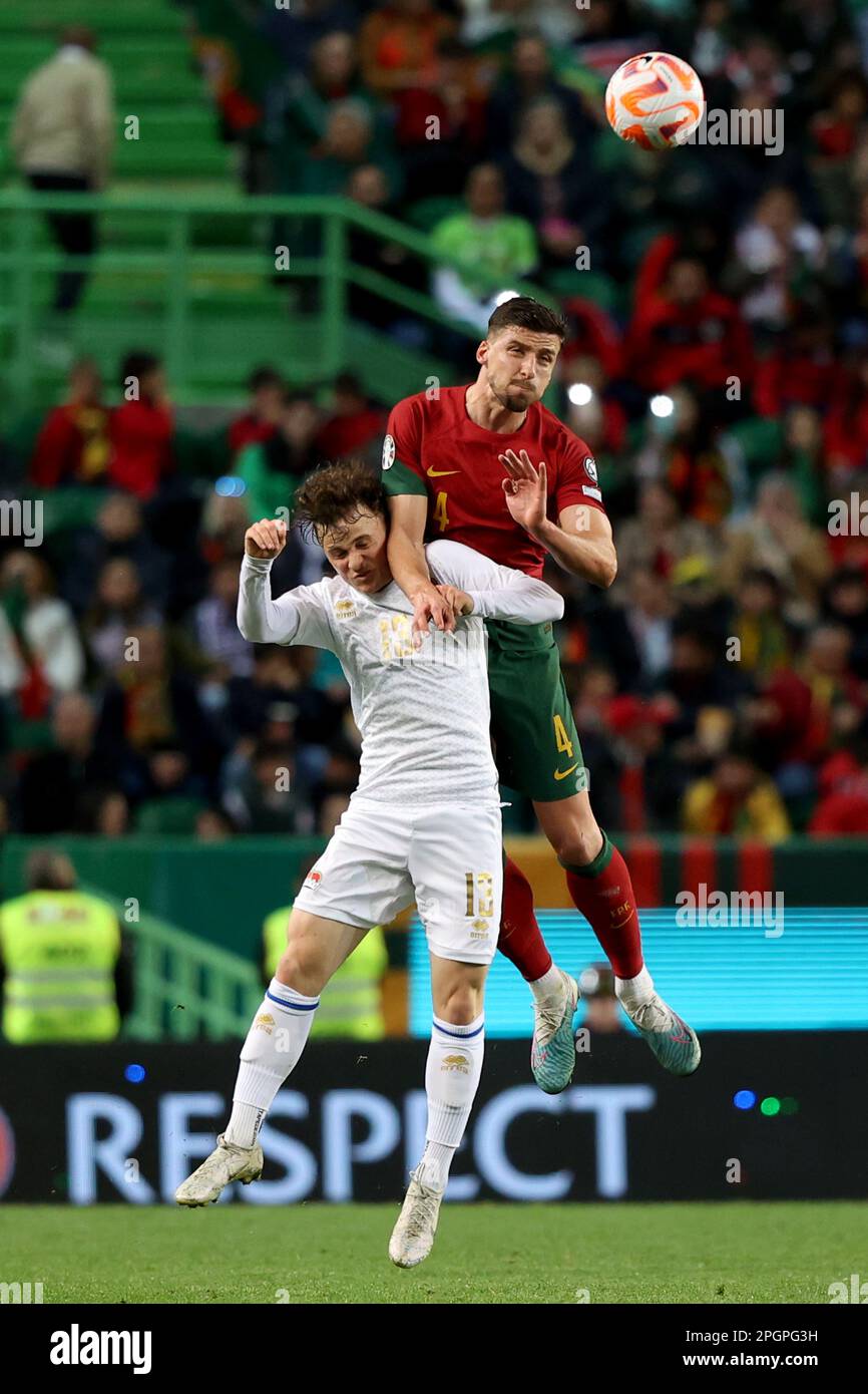 Source : www.aljazeera.comLisbon. 23rd Mar, 2023. Ruben Dias (R) of Portugal vies with Jakob
